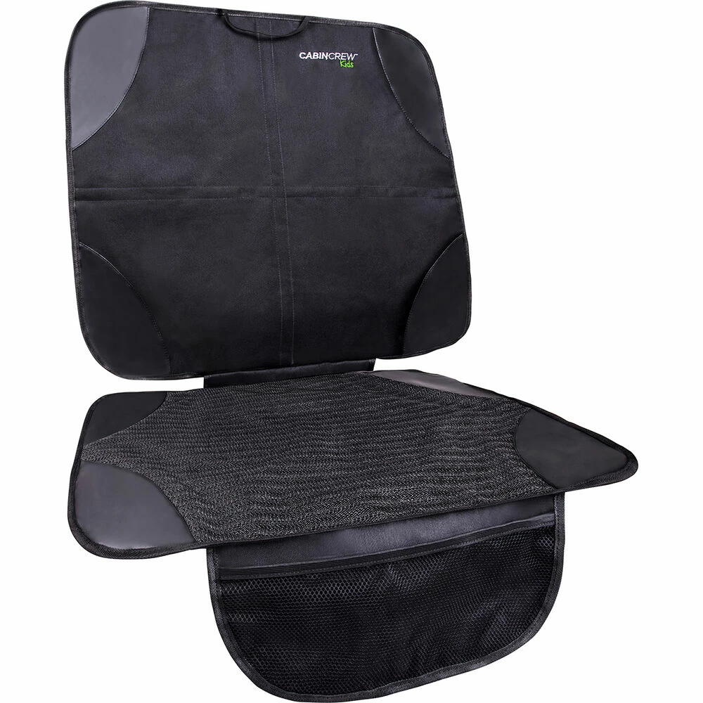 The Cabin Crew Under Seat Protector spreads wide across your vehicle’s seat, in addition to a stabiliser it also protects the area from spills, baby cough-ups and also safeguards the car upholstery against cutting as well as wear and tear damage from the baby seat. Lastly the protector comes with an attached front pocket that serves as a storage area for things like baby wipes, snacks and more.